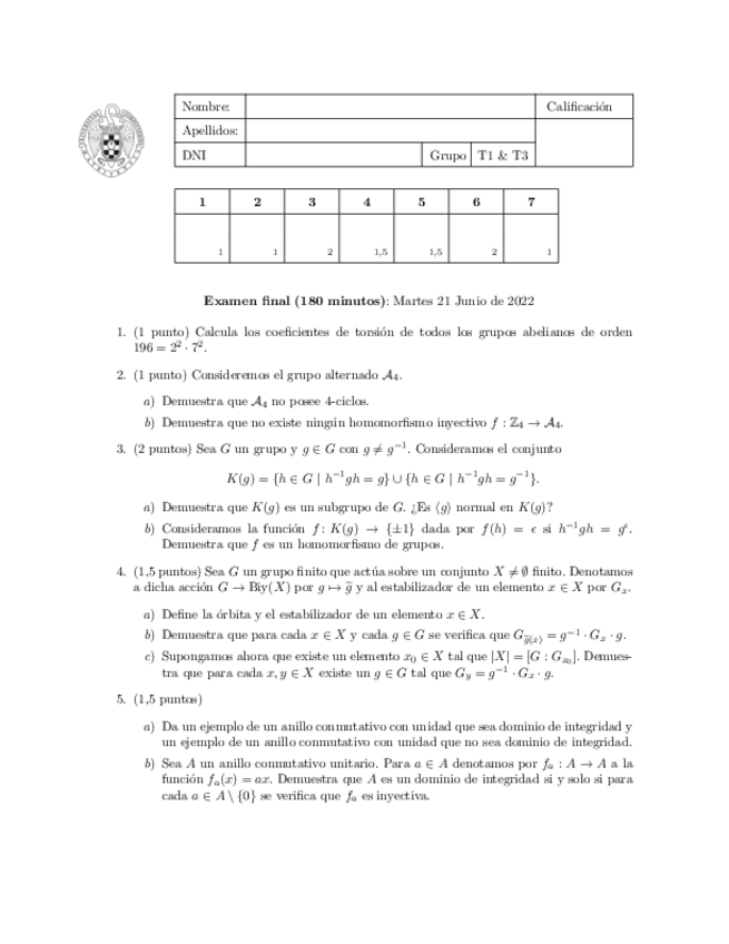 He publicado nuevos examenes de 2º Estructuras Algebraicas: Examen-2025-Alejandra-Garrido.pdf