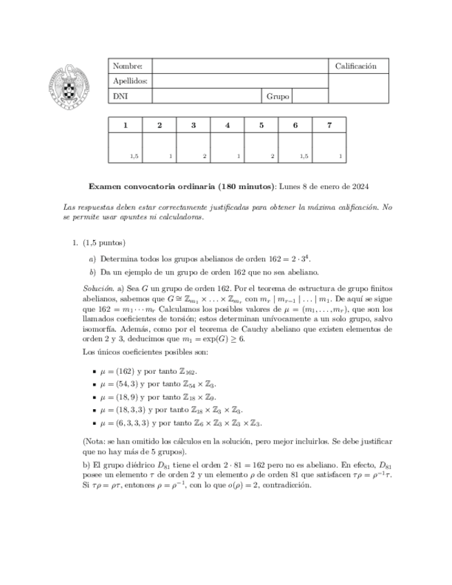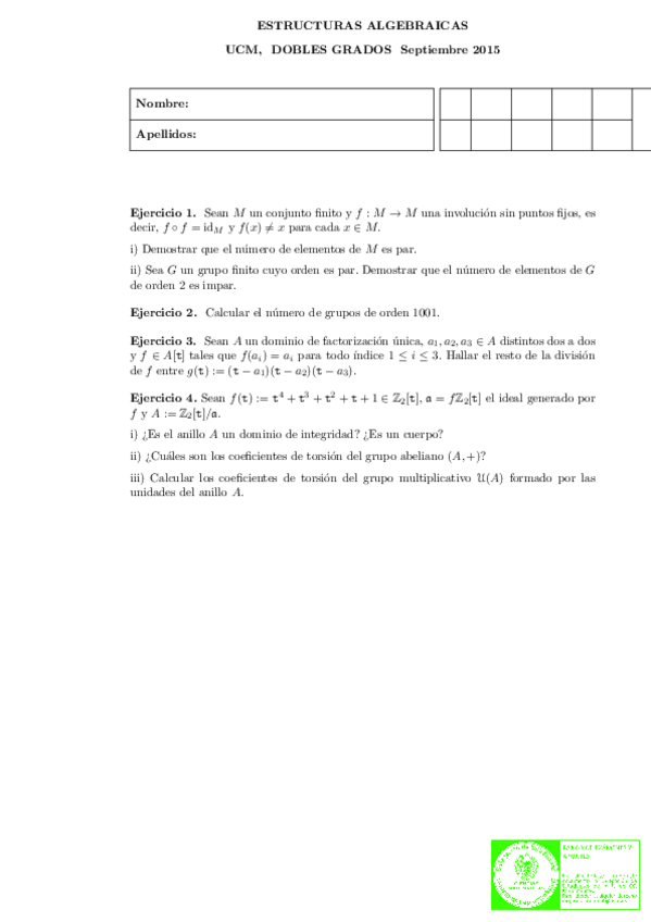 Exámenes resueltos Estructuras Algebraicas