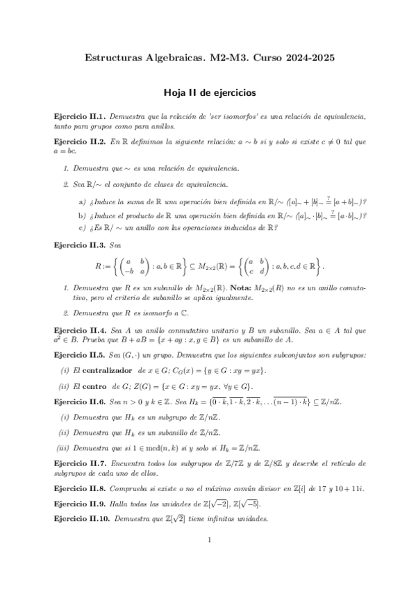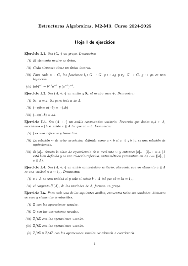 He publicado nuevos ejercicios de 2º Estructuras Algebraicas: hoja-1.pdf.pdf