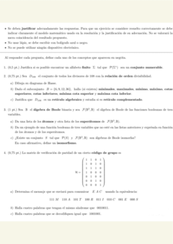 He publicado nuevos examenes de 1º ESTRUCTURAS ALGEBRÁICAS PARA LA COMPUTACIÓN: Examen-Algebra-1.pdf