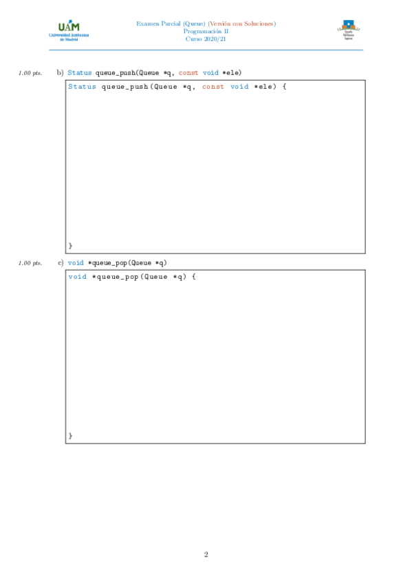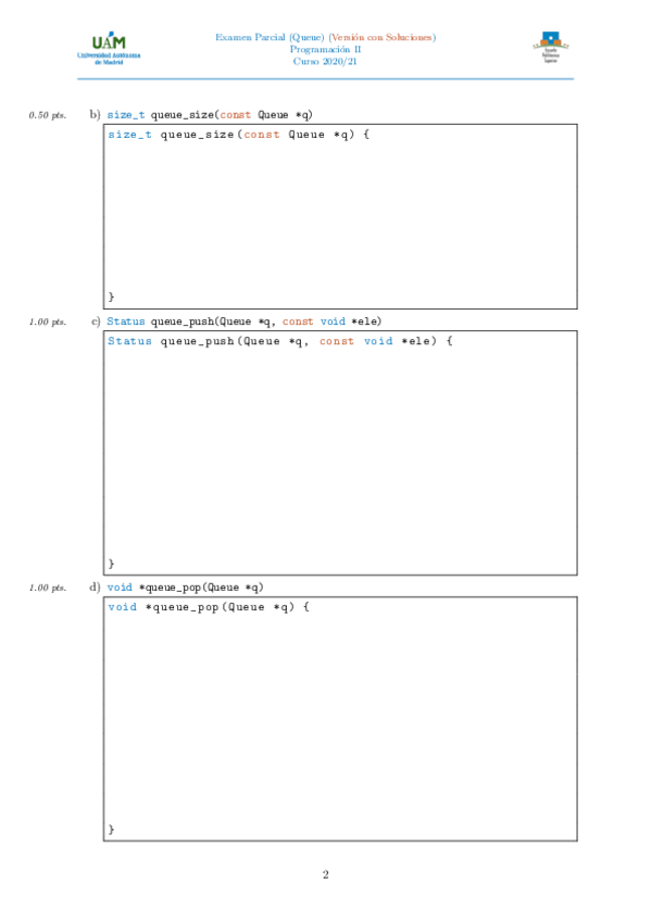 He publicado nuevos examenes de 1º Estructuras de Datos: Queue viernes 2021.pdf