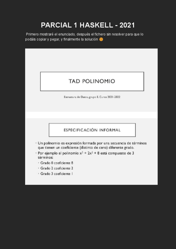 He publicado nuevos examenes de 2º Estructuras de Datos: Parcial Haskell 2023 RESUELTO