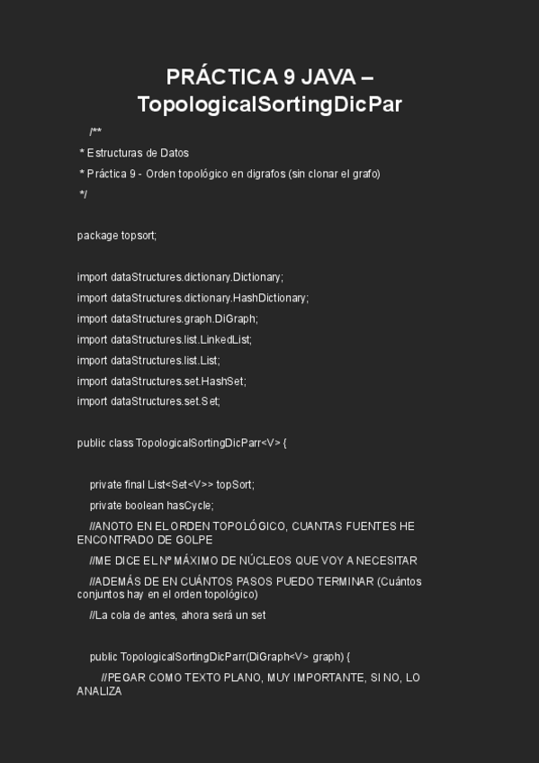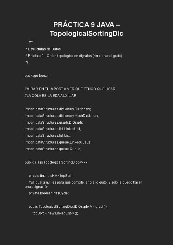 Práctica 9 Topological Sorting JAVA