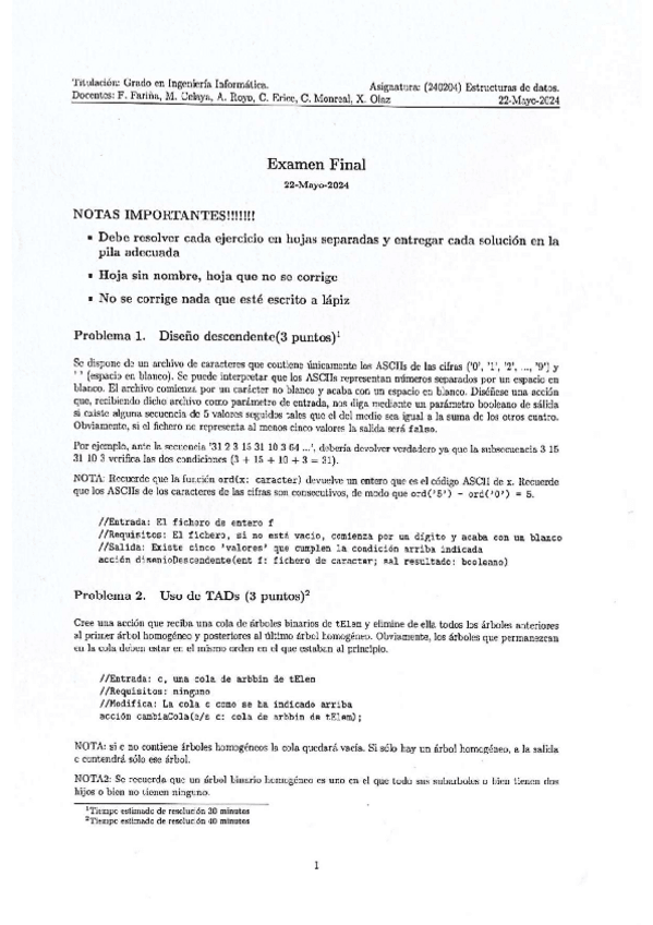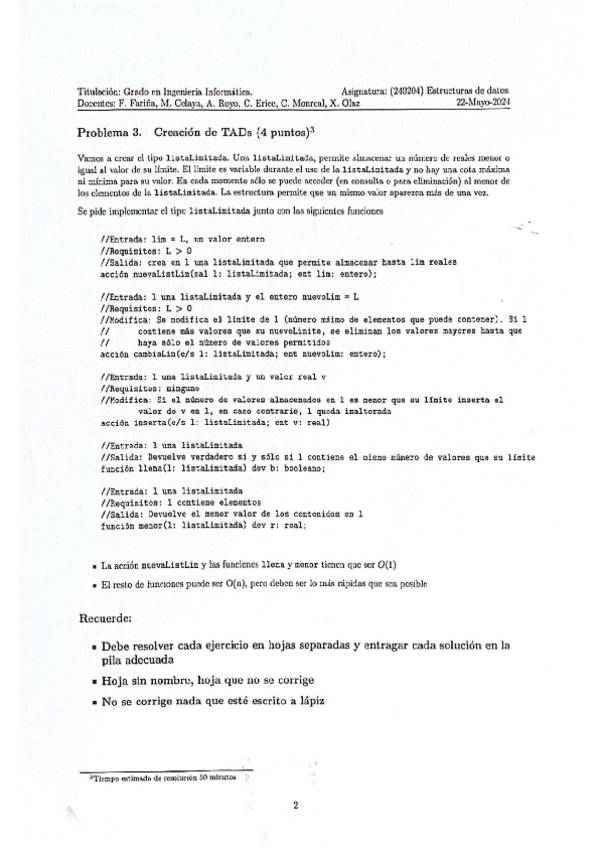 He publicado nuevos examenes de 1º Estructuras de Datos: Examen Ordinario 2024.pdf