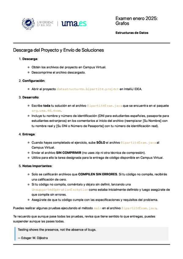 La clase resuelta BipartiteExam pasa todos los test y tiene comentarios sobre el funcionamiento del código