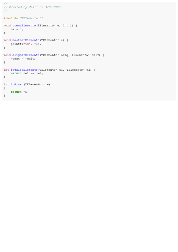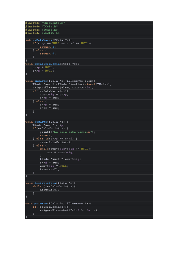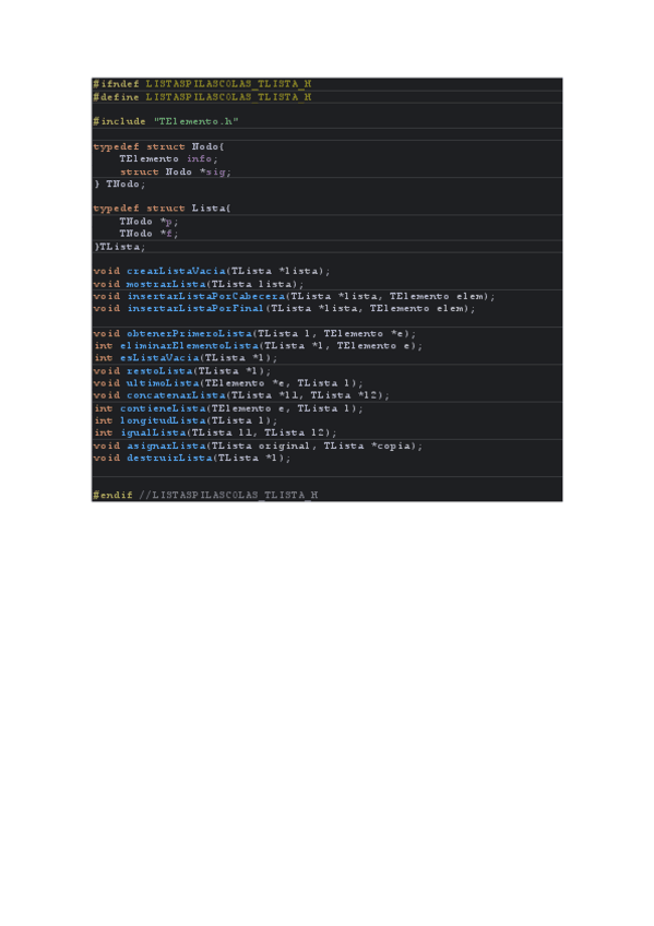 Códigos de TElemento, TListaEnlazadaSimplePrincipioFinal, TPila y TCola