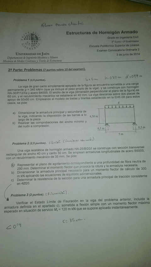 He publicado nuevos examenes de 3º Estructuras de Hormigón Armado: Final Junio 2018