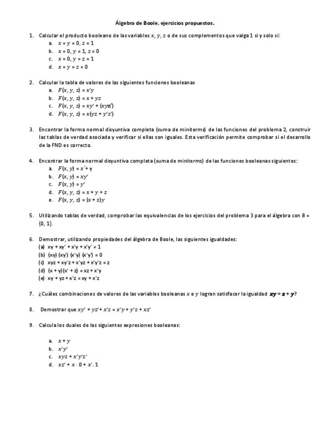 He publicado nuevos apuntes de 1º Estructuras Discretas para Cs. de la Comp.: Ejercicios.AlgebraBooleanaCircuitosLogicos.pdf