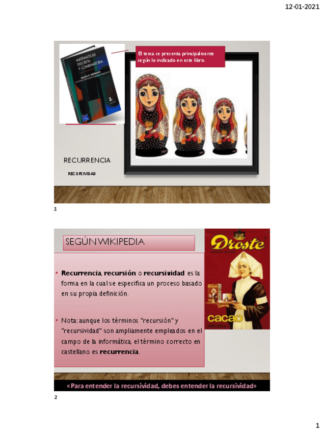 He publicado nuevos apuntes de 1º Estructuras Discretas para Cs. de la Comp.: Recurrencia.clase.pdf