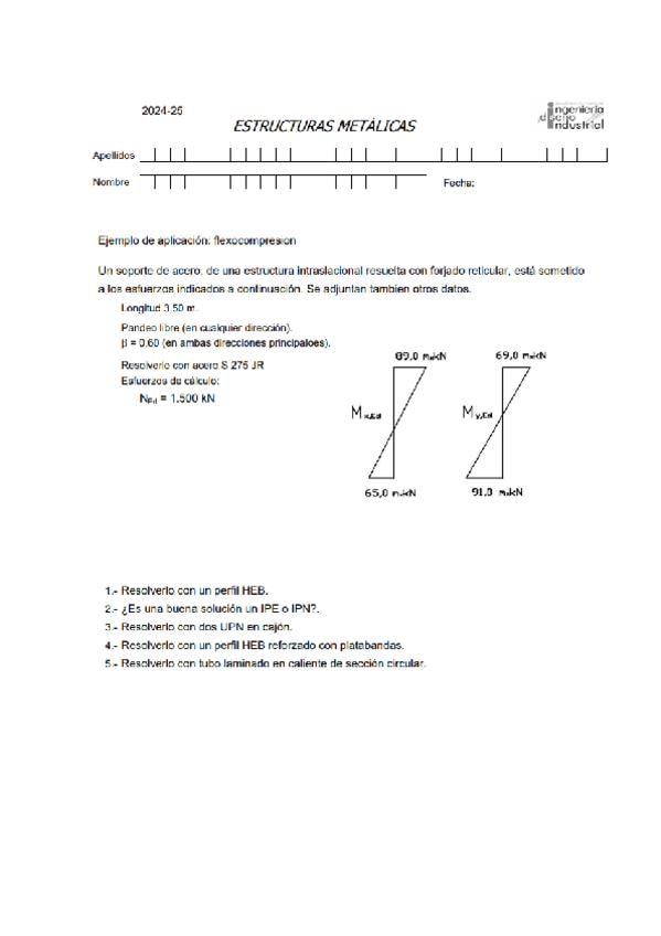 He publicado nuevos apuntes de 4º Estructuras Metálicas: examen-Estructuras-Metalicas.pdf