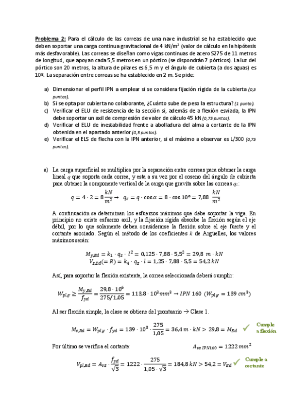 He publicado nuevos examenes de 2º Estructuras y construcciones industriales: 2016 12 15 Ex Estructuras metalicas P2 resuelto.pdf
