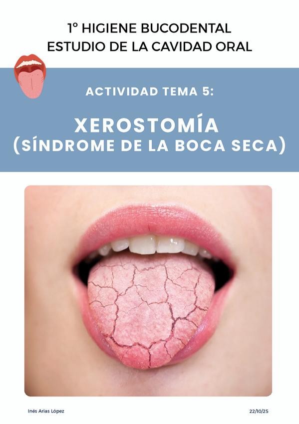 Trabajo Xerostomía (síndrome de la boca seca). Introducción, síntomas, pronóstico, tratamientos, factores de riesgo, prevención, conclusión y bibliografía.