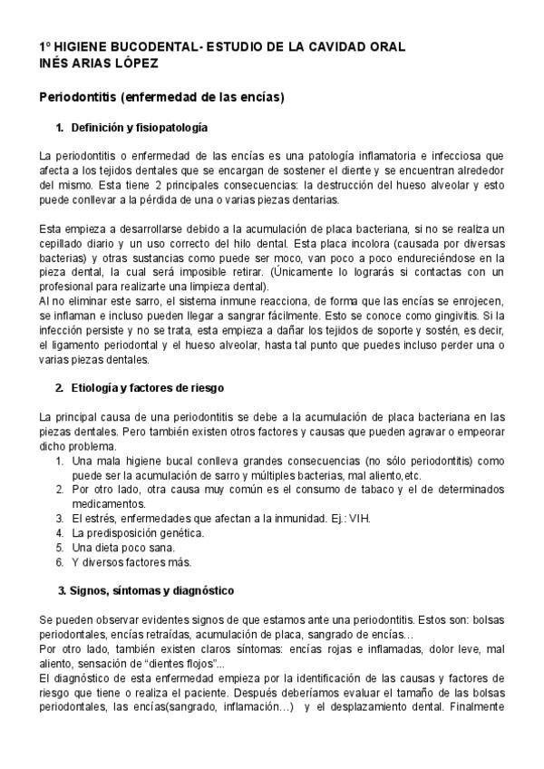 Trabajo Periodontitis (enfermedad de las encías). Definición y fisiopatología, etiología y factores de riesgo, signos, síntomas y diagnóstico, tratamientos y bibliografía.