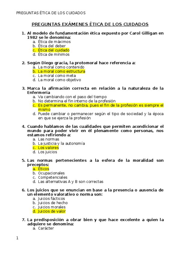 He publicado nuevos examenes de 1º ética de los Cuidados: Preguntas-etica.docx