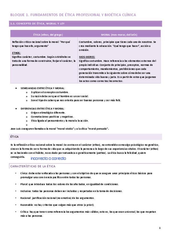 Apuntes de ética bloque 1, completos y con apuntes extra que explican en clase