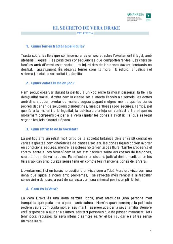 Preguntas y correcciones en classe sobre el ejercicio que se hace de la pelicula