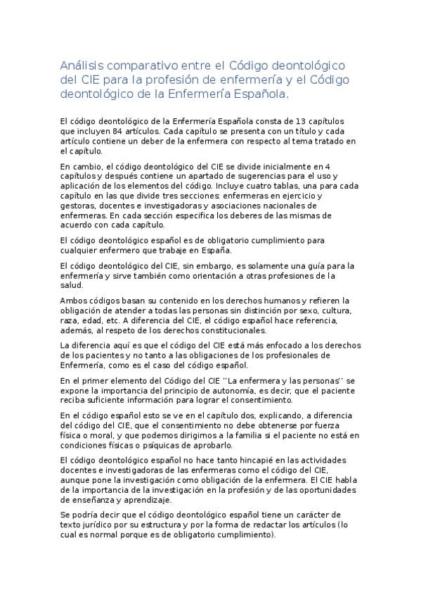 Análisis comparativo entre el Código deontológico del CIE para la profesión de enfermería y el Código deontológico de la Enfermería Española.docx