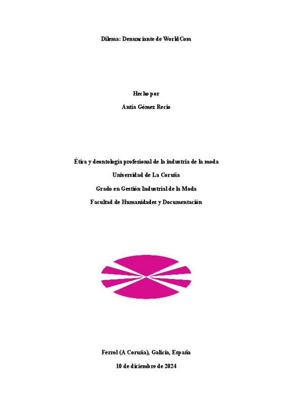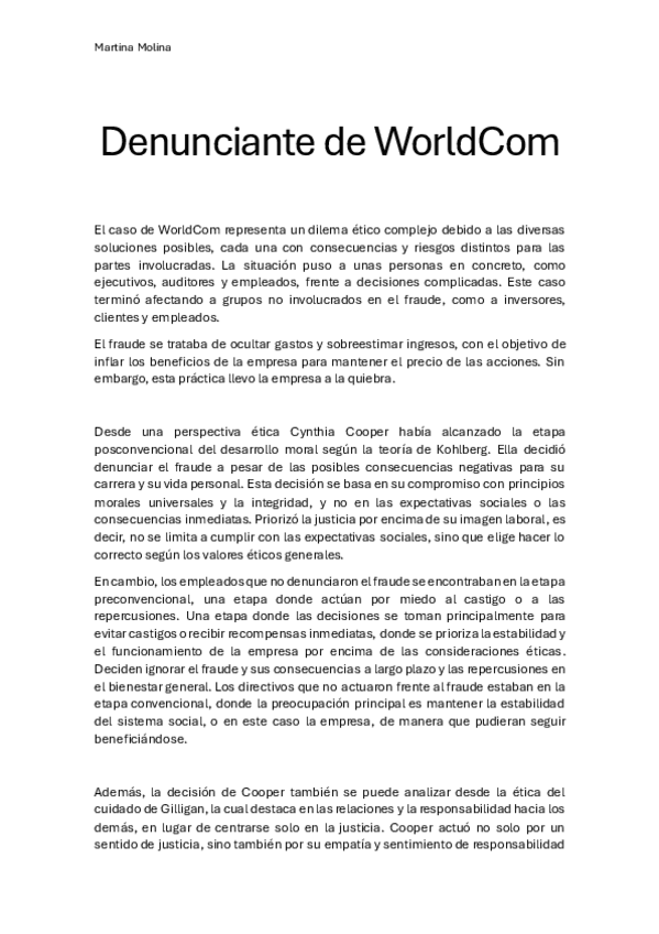 He publicado nuevos trabajos de 2º Ética y deontología profesional de la industria de la moda: Denunciante-WorldComMartinaMolina.pdf