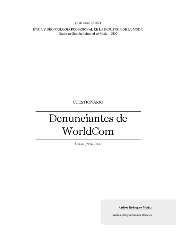 He publicado nuevos trabajos de 2º Ética y deontología profesional de la industria de la moda: CUESTIONARIO-DENUNCIANTE-DE-WORLDCOM.pdf