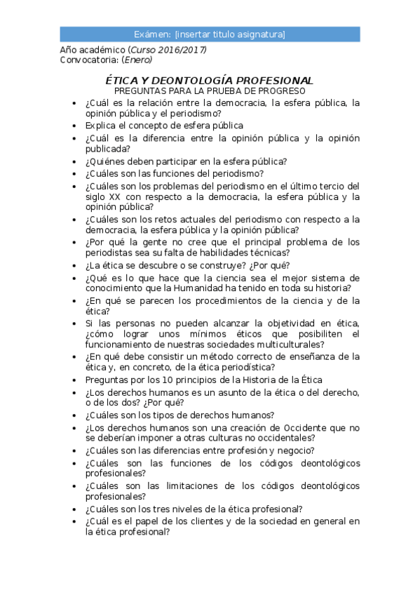 He publicado nuevos examenes de 3º Ética y Deontología Profesional: PRUEBA PROGRESO ÉTICA.docx