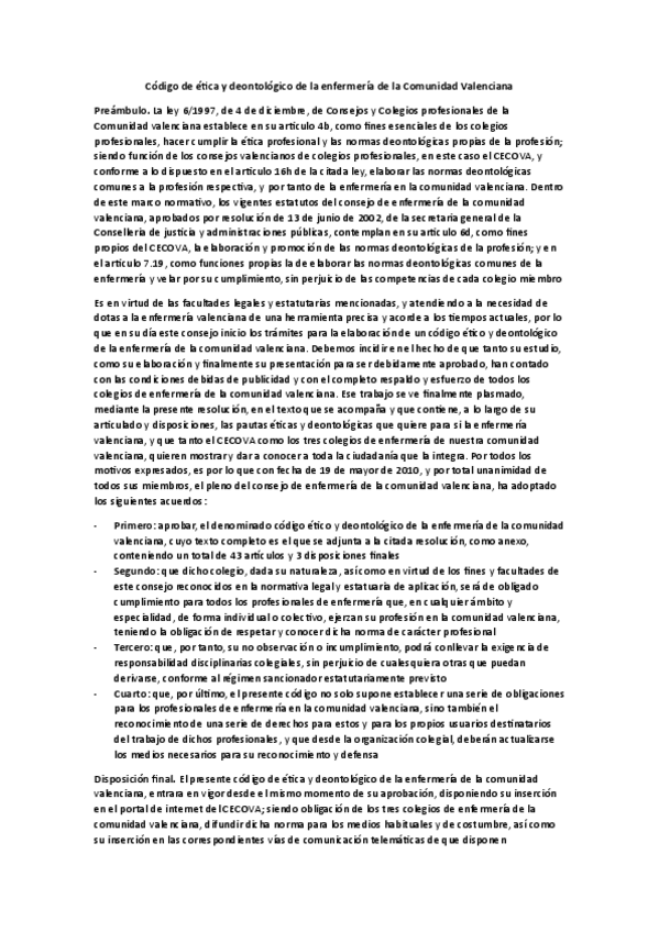 He publicado nuevos apuntes de 3º ética y Legislación Profesional: Resumen-CÓDIGO DE ETICA Y DEONTOLOGIA DE LA ENFERMERIA DE LA CV.pdf