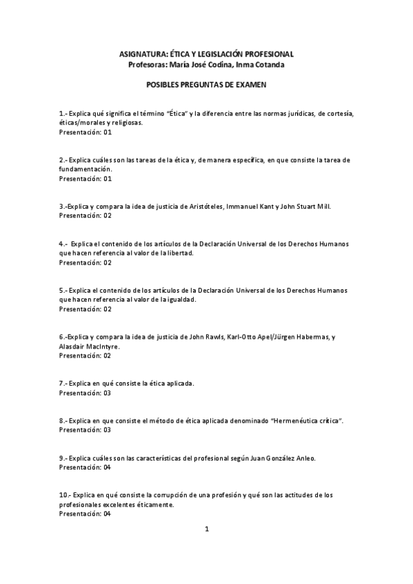 He publicado nuevos examenes de 3º ética y Legislación Profesional: 43 PREGUNTAS-EXAMEN-ETICA-CASTELLANO.pdf