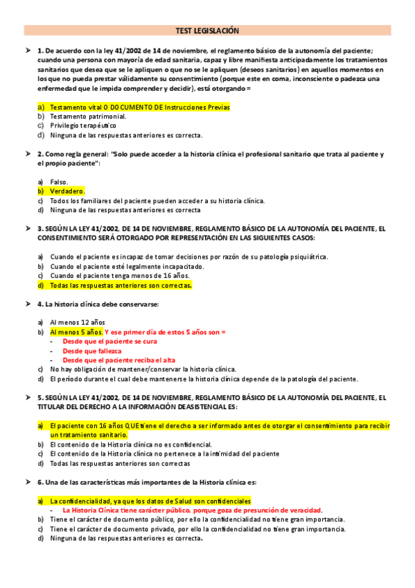 Tests Legislación