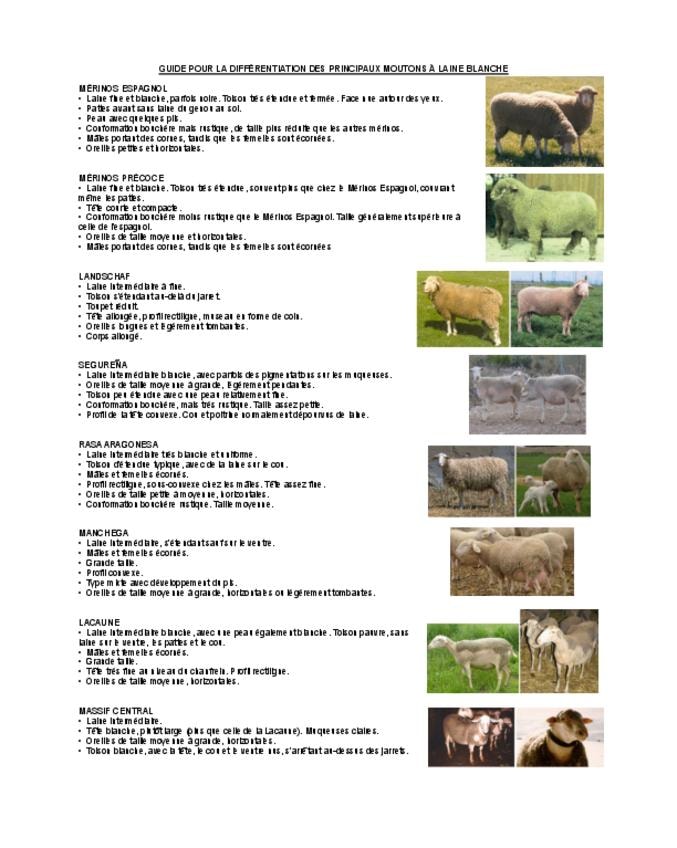 GUIDE POUR LA DIFFÉRENTIATION DES PRINCIPAUX MOUTONS À LAINE BLANCHE Ethnologie