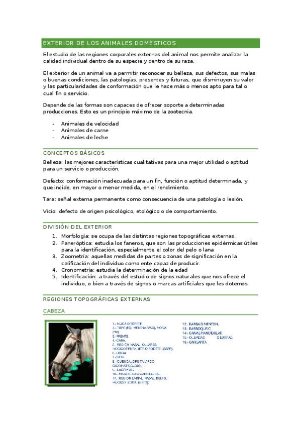 1° veterinaria : etnología resumen : exterior de los animales domésticos