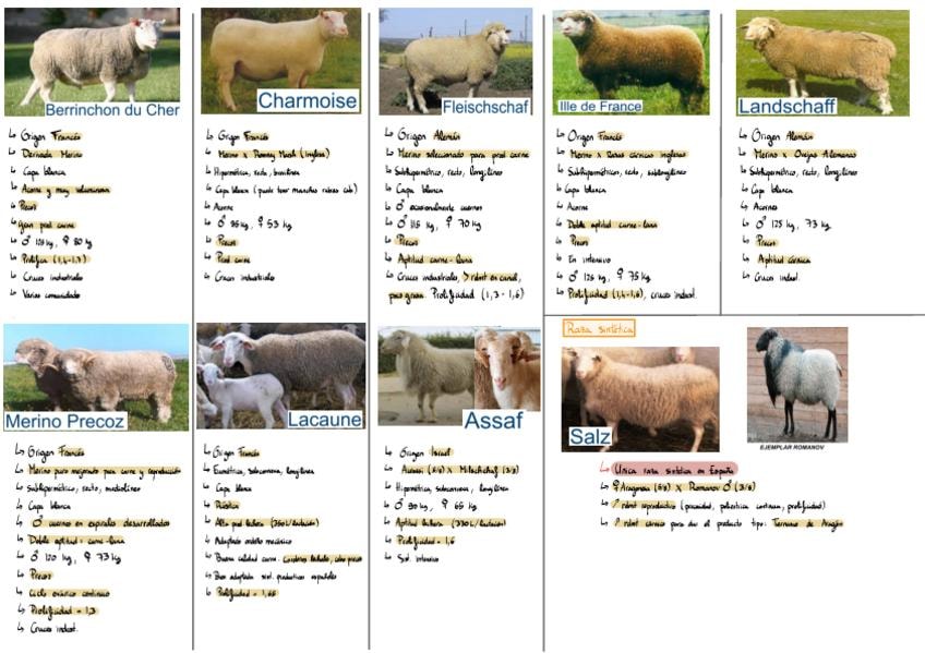 apuntes de todo el tema de razas ganado ovino con las tres partes de la presentación.