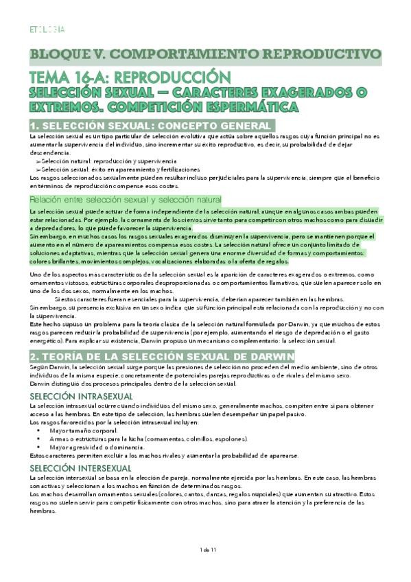 - TEMA 16-A: REPRODUCCIÓN Selección sexual — caracteres exagerados o extremos. Competición espermática -TEMA 16-B: SISTEMAS DE APAREAMIENTO Tipos. Restricciones. Monogamia. Poliginia social y genética. Umbral de la poliginia. Poliandria.