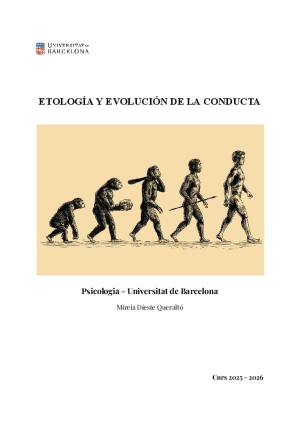 Apunts d'etologia i evolució de la conducta amb el professor Francesc Salvador del curs 25/26. Els apunts estan basats en la presentació i explicacions de classe del professor Salvador. A més inclouen contingut extra com fotos, exemples i explicacions amp