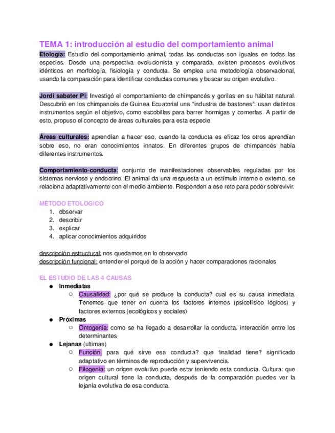 Apuntes de etologia TEMA 1_ INTRODUCCIÓN AL ESTUDIO DEL COMPORTAMIENTO ANIMAL