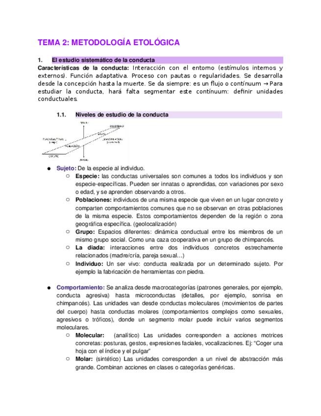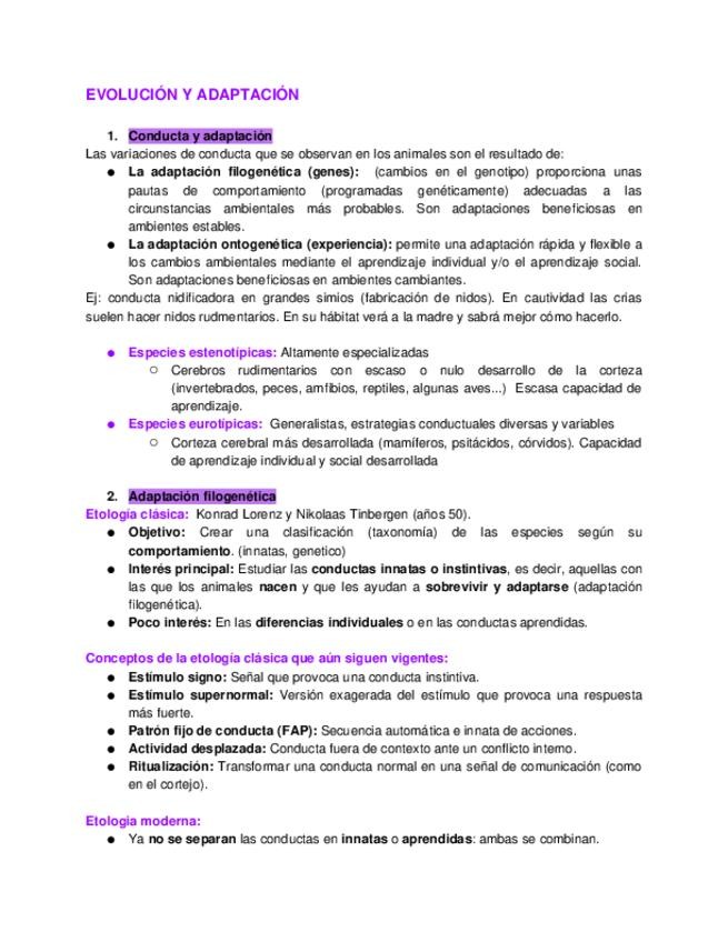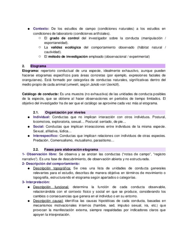 Apuntes de etologia RESUMEN TEMA 2 ETOLOGIA Y EVOLUCIÓN DE LA CONDUCTA