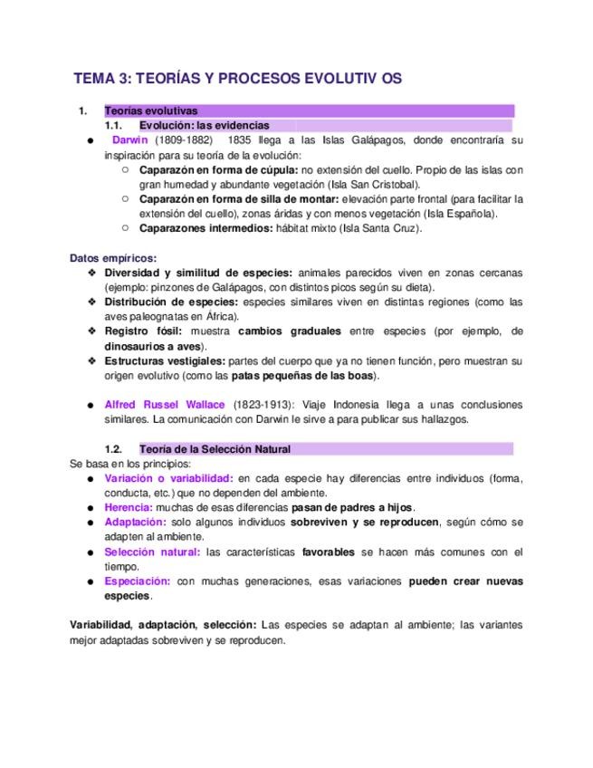 Apuntes etologia TEMA 3_ TEORÍAS Y PROCESOS EVOLUTIVOS
