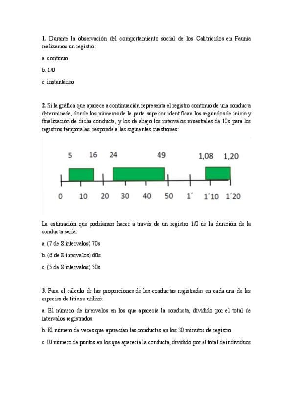 Examen prácticas etología, cuestionario faunia + conferencia + observer. Todas las clases, curso 24-25