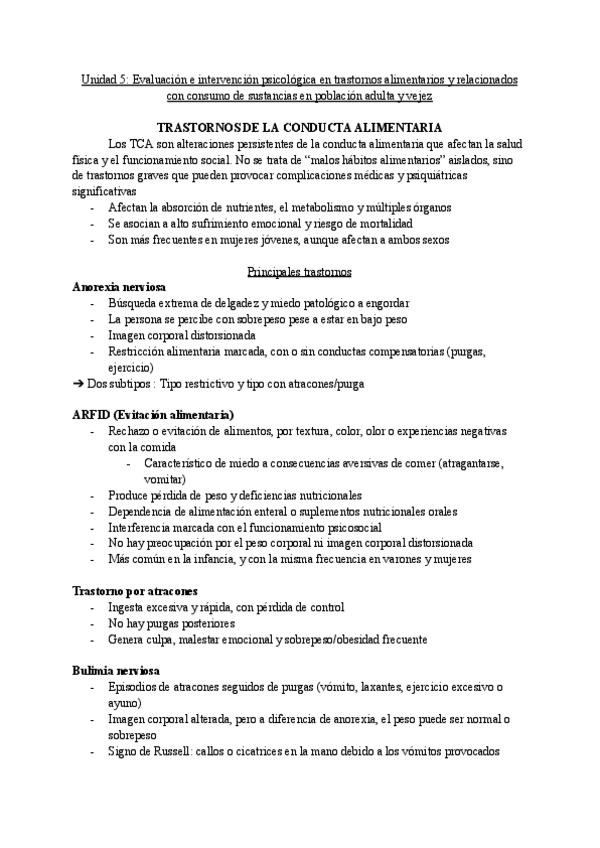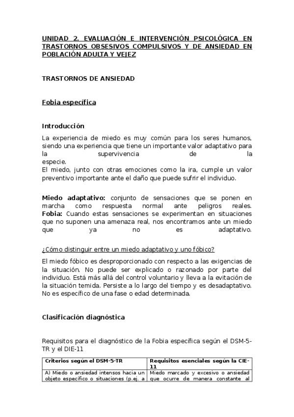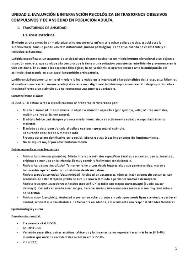 Unidad 2: EVALUACIÓN E INTERVENCIÓN PSICOLÓGICA EN TRASTORNOS OBSESIVOS COMPULSIVOS Y DE ANSIEDAD EN POBLACIÓN ADULTA Y VEJEZ. Los apuntes incluyen los casos prácticos.