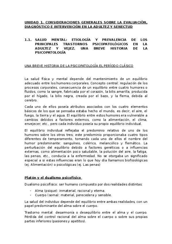 Apuntes de la Unidad 1: CONSIDERACIONES GENERALES SOBRE LA EVALUACIÓN, DIAGNÓSTICO E INTERVENCIÓN EN LA ADULTEZ Y SENECTUD