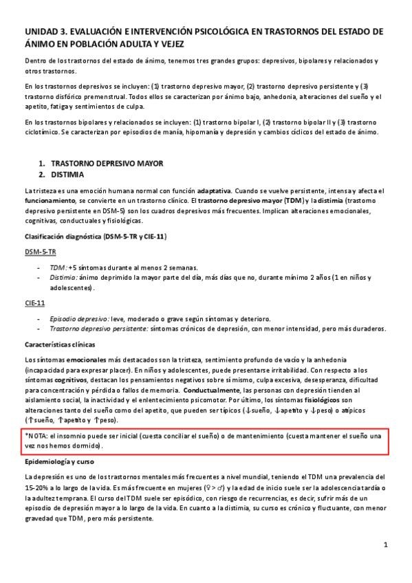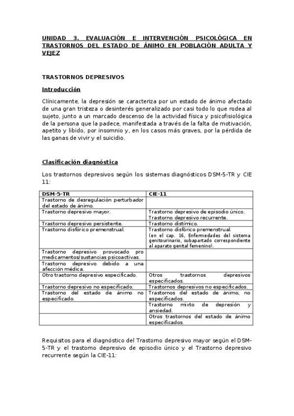 UNIDAD 3. EVALUACIÓN E INTERVENCIÓN PSICOLÓGICA EN TRASTORNOS DEL ESTADO DE ÁNIMO EN POBLACIÓN ADULTA Y VEJEZ