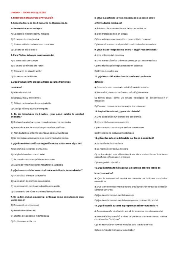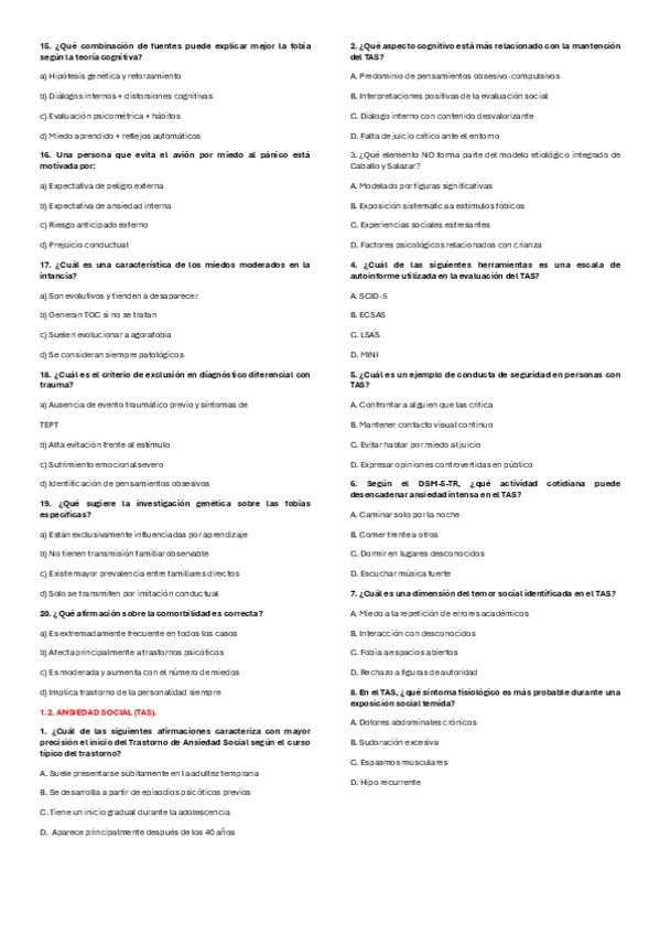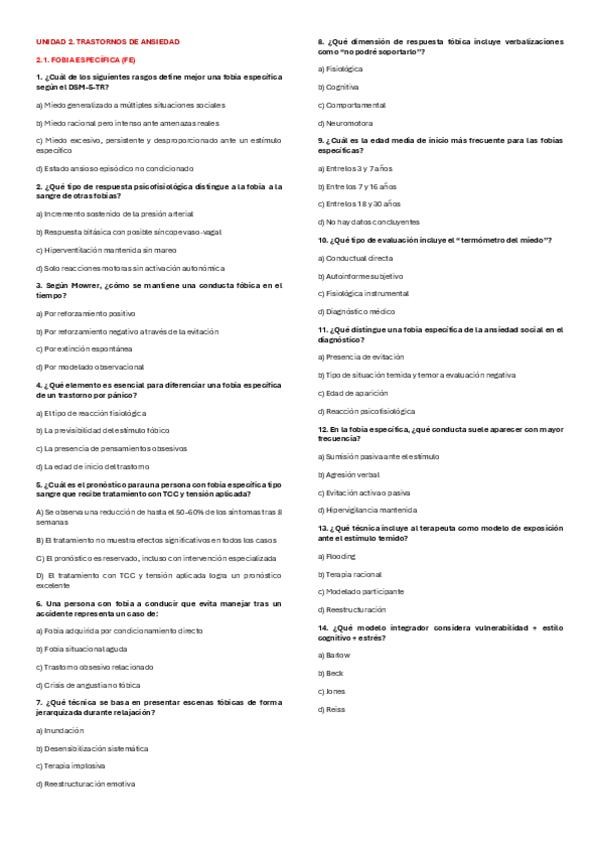 TEST/QUIZZES DE TODOS LOS TEMAS DE LA UNIDAD 2. TRASTORNOS DE ANSIEDAD.