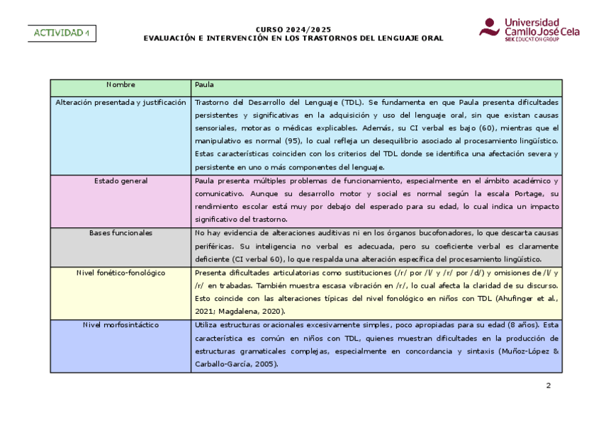 He publicado nuevos apuntes de 4º Evaluación e Intervención en los Trastornos de Lenguaje Oral: Actividad-4CasoPaulaEITLO.pdf