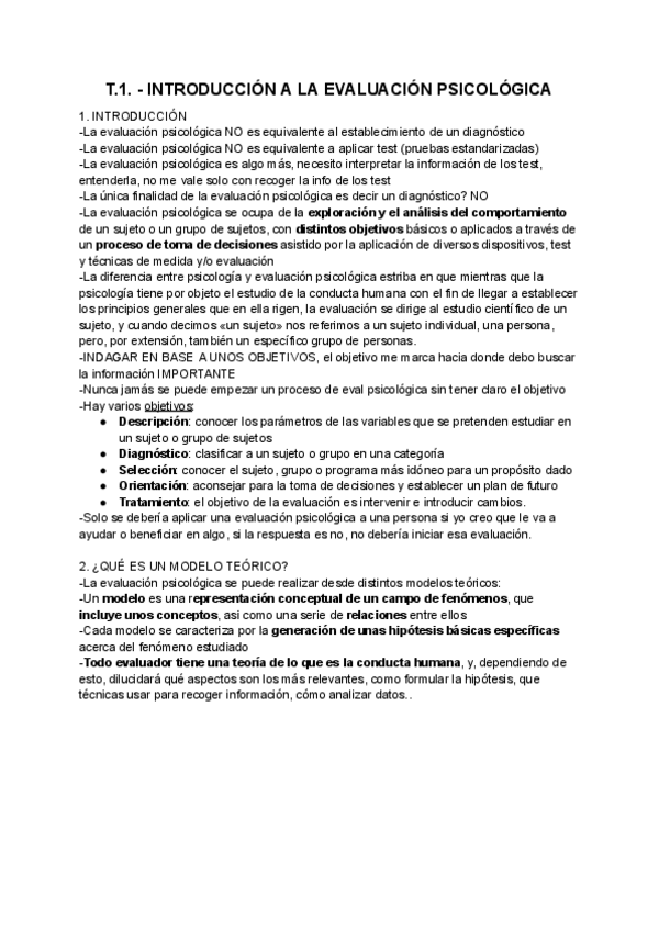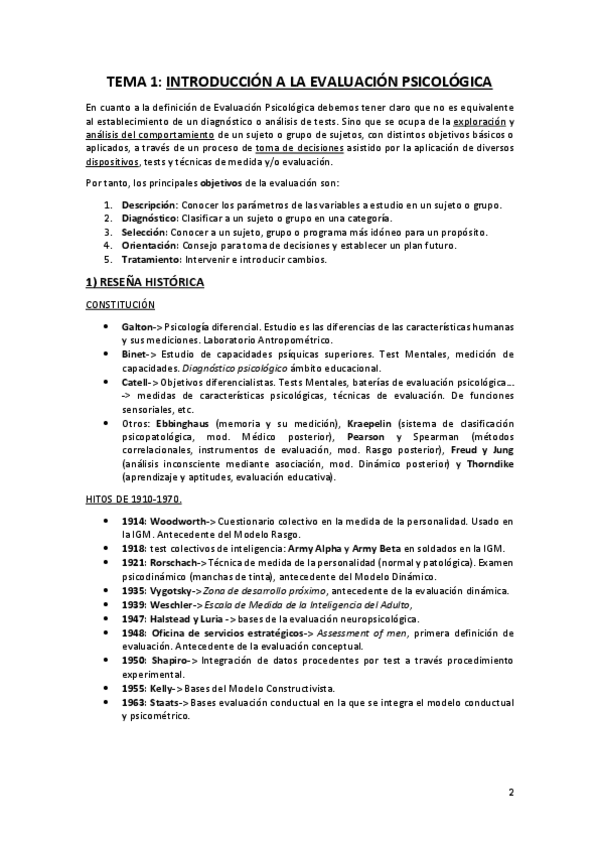 He publicado nuevos apuntes de 2º Evaluación Psicológica I: Esquema tema 1 y 2