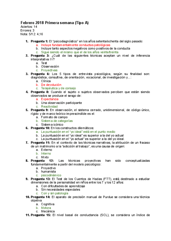 Aquí dejo una colección de preguntas de examen que yo he fallado, con las respuestas correctas marcadas en verde y las incorrectas en rojo