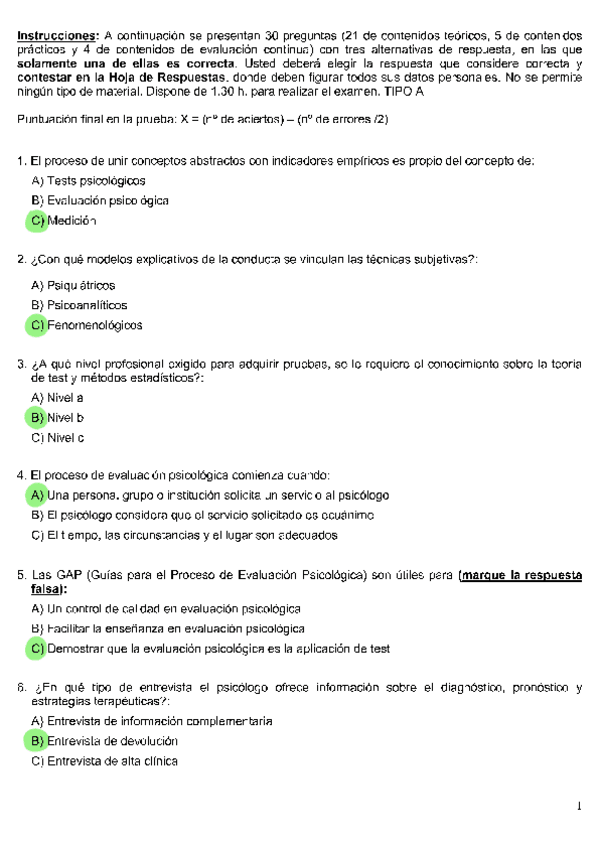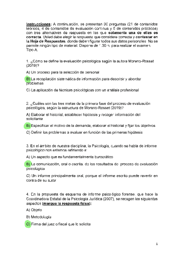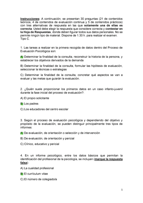 EXAMENES RESUELTOS AÑO 2023-2024 EVALUACIÓN PSICOLÓGICA
