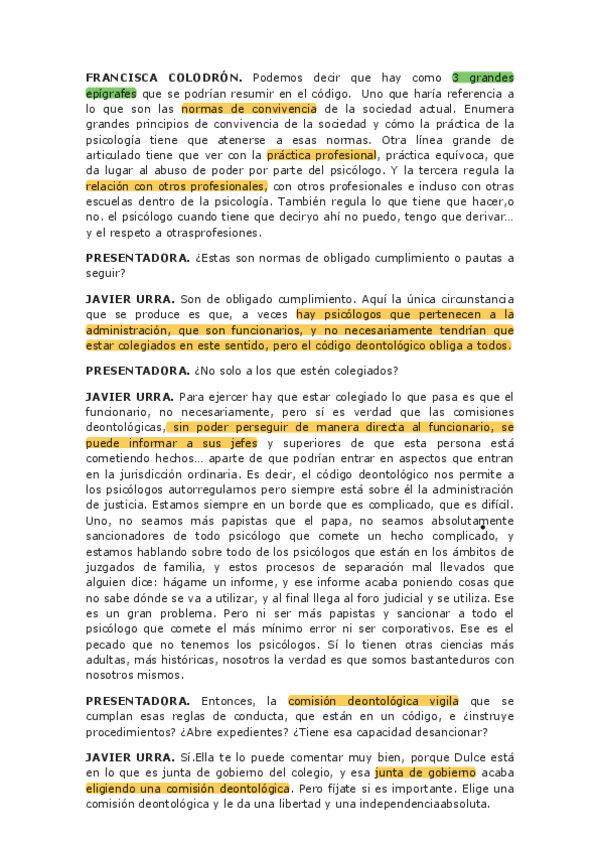 Contenido evaluable examen, programa radio sobre el Código deontológico de Psicología