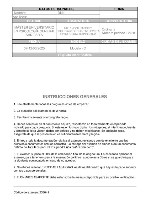 He publicado nuevos examenes de 1º Evaluación y Psicodiagnóstico. Entrevista y Propuesta Terapéutica: 2026-MODELO-A-EVALUACION-EXAMEN.docx.pdf