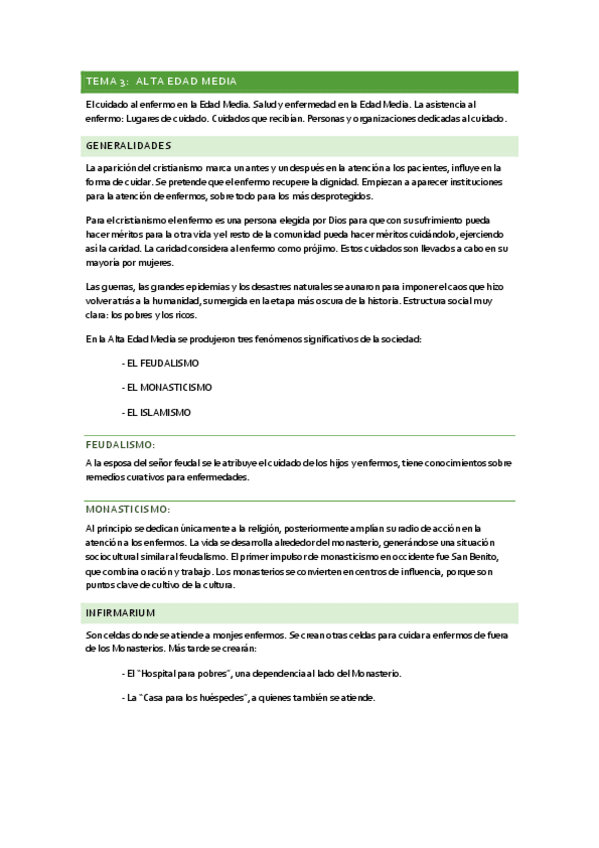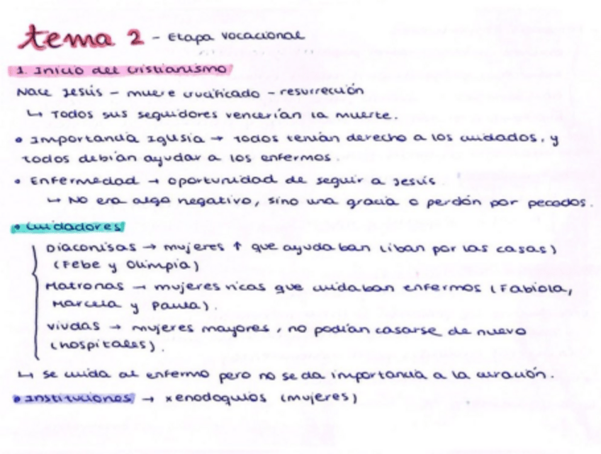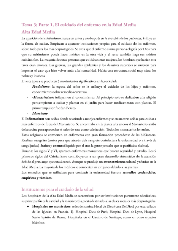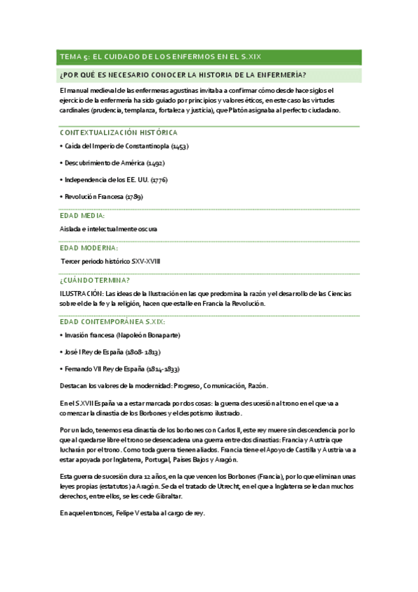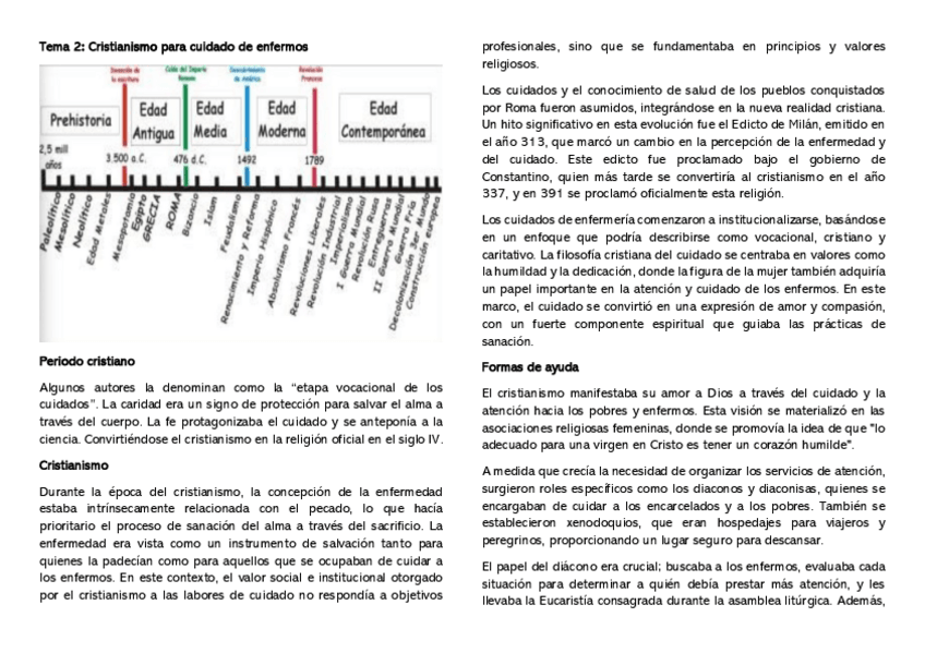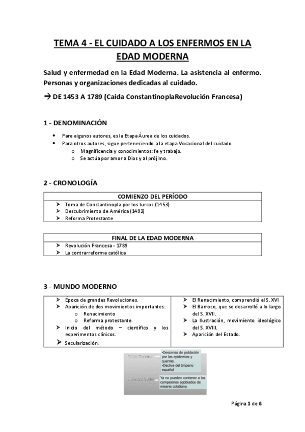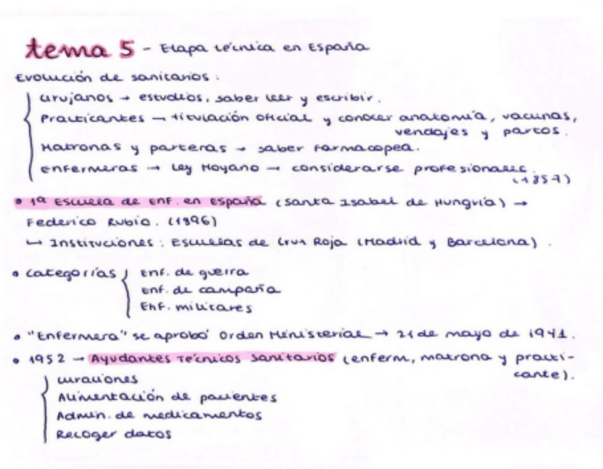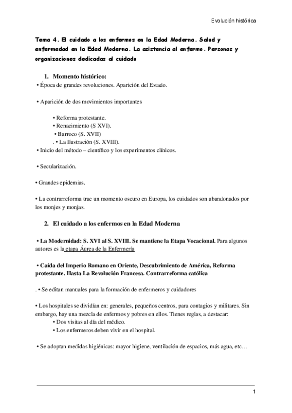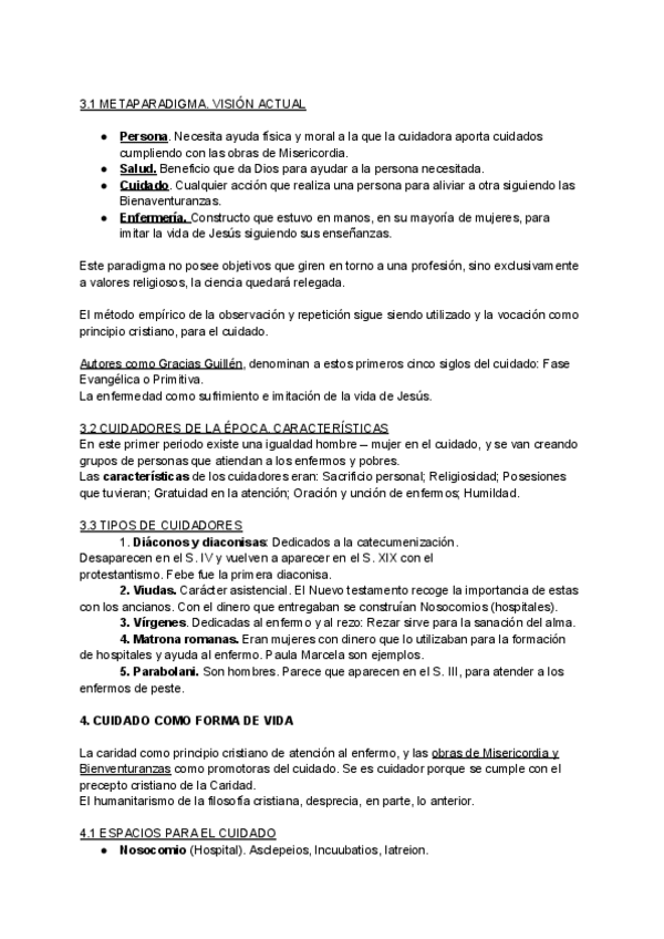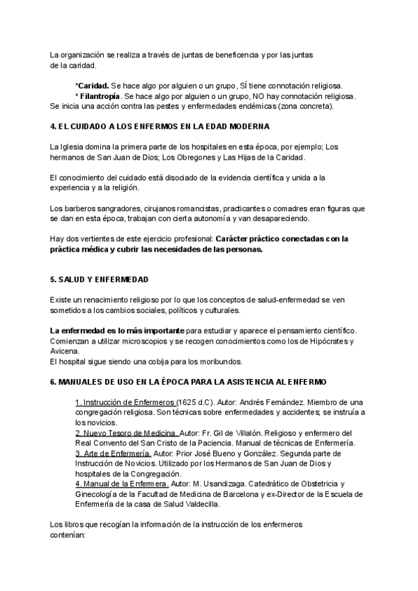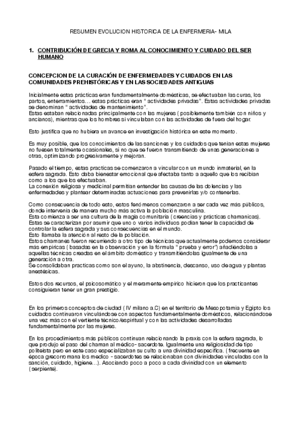 Resumen del tema 4 de Evolución histórica de los cuidados aportado por la profesora Milagrosa Olmedo Alguacil