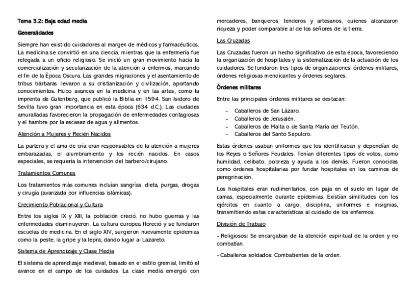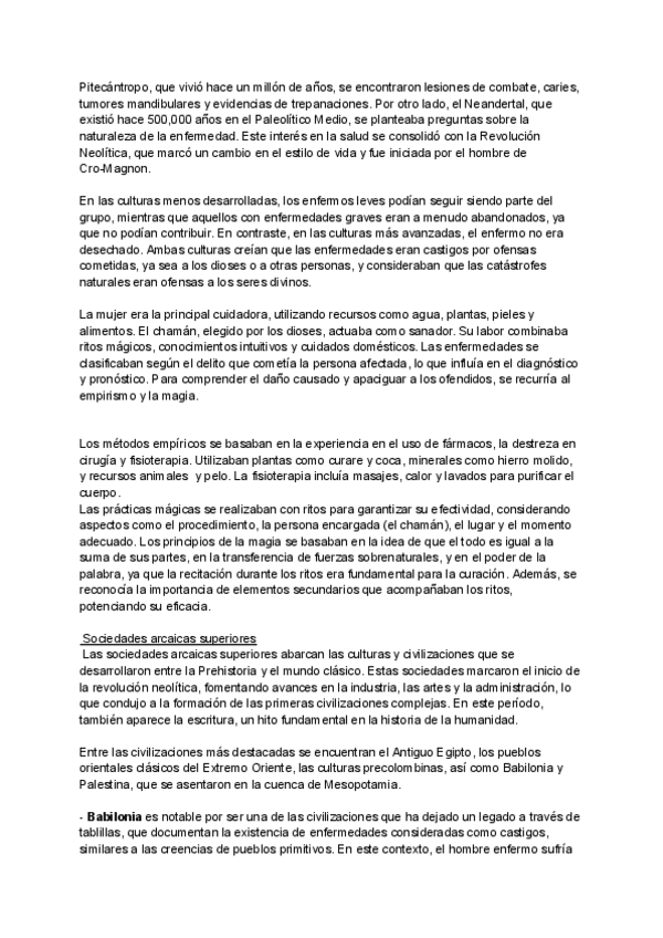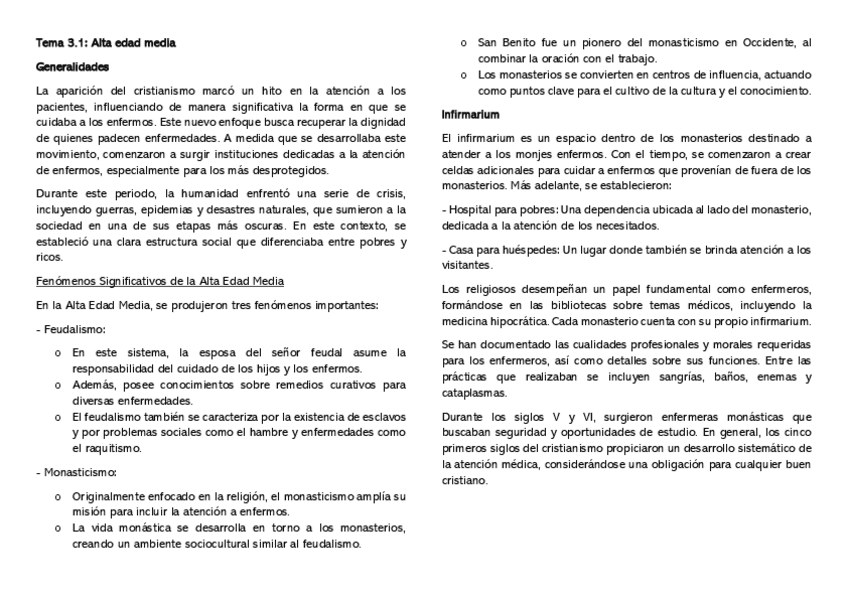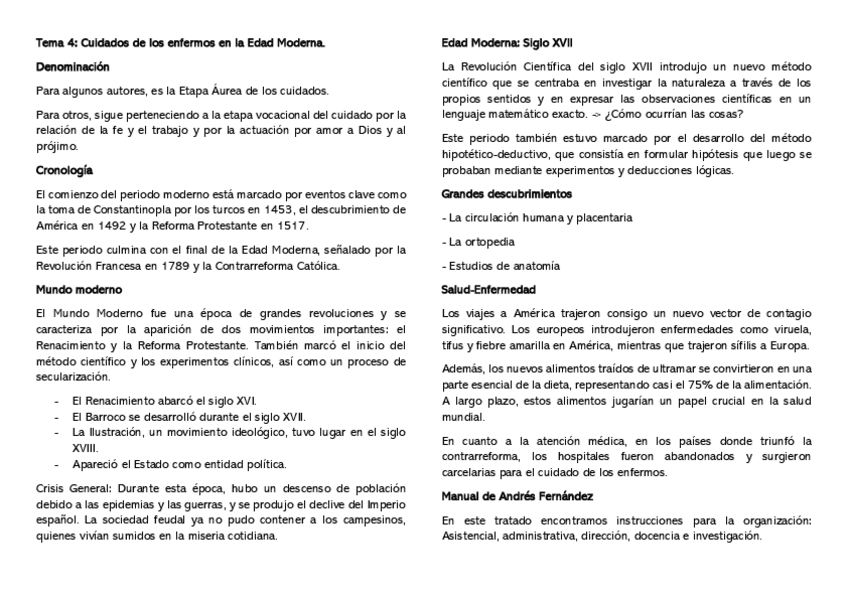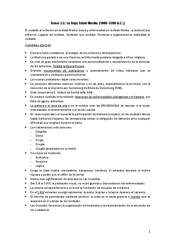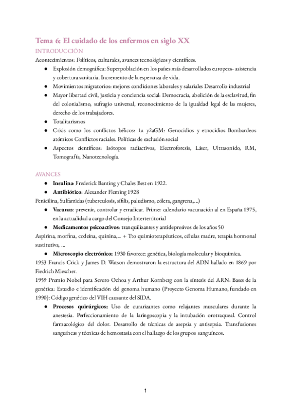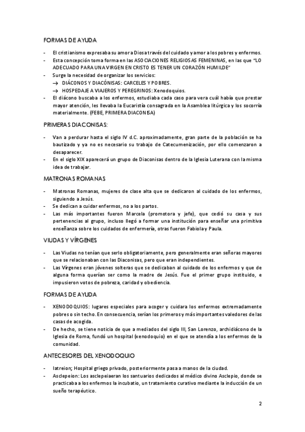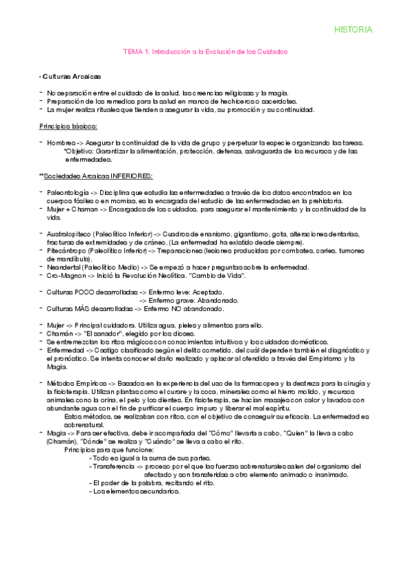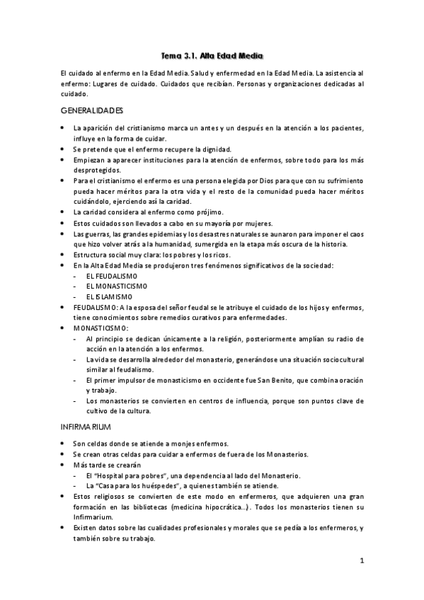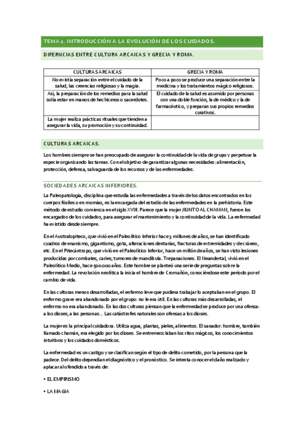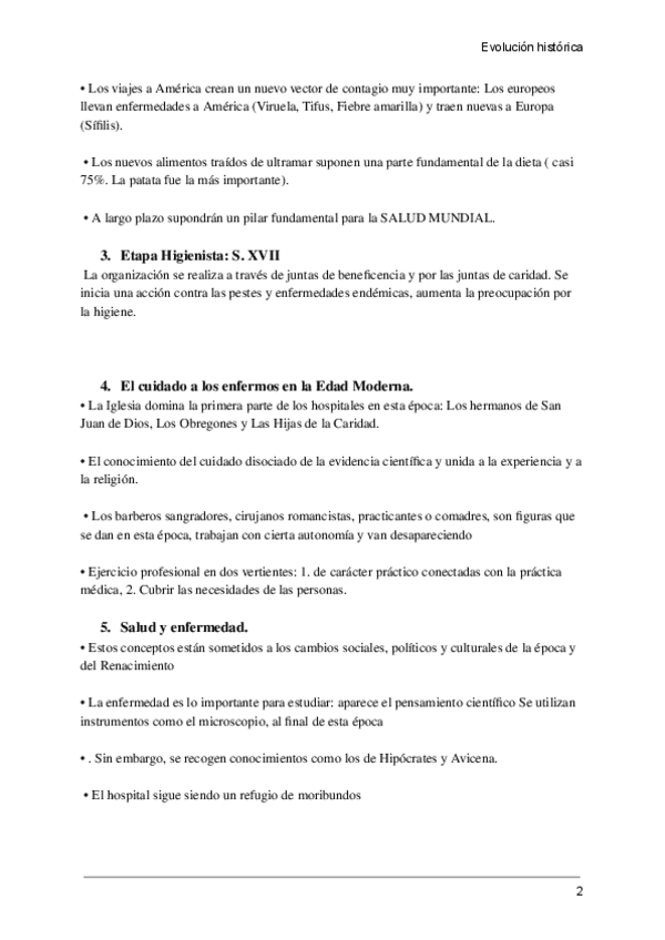 Resumen del tema 4 de Evolución histórica de los cuidados aportado por la profesora Milagrosa Olmedo Alguacil