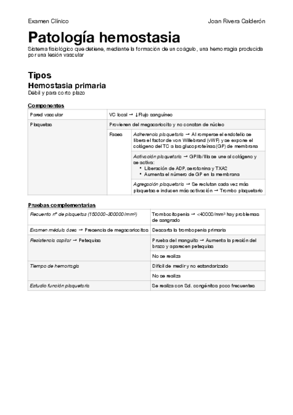 He publicado nuevos apuntes de 2º Examen Clínico: Esquema patología de la hemostasia.pdf