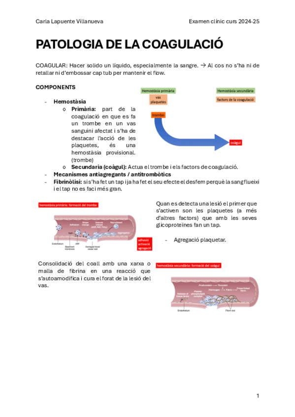 He publicado nuevos apuntes de 2º Examen Clínico: Esquema patología de la hemostasia.pdf